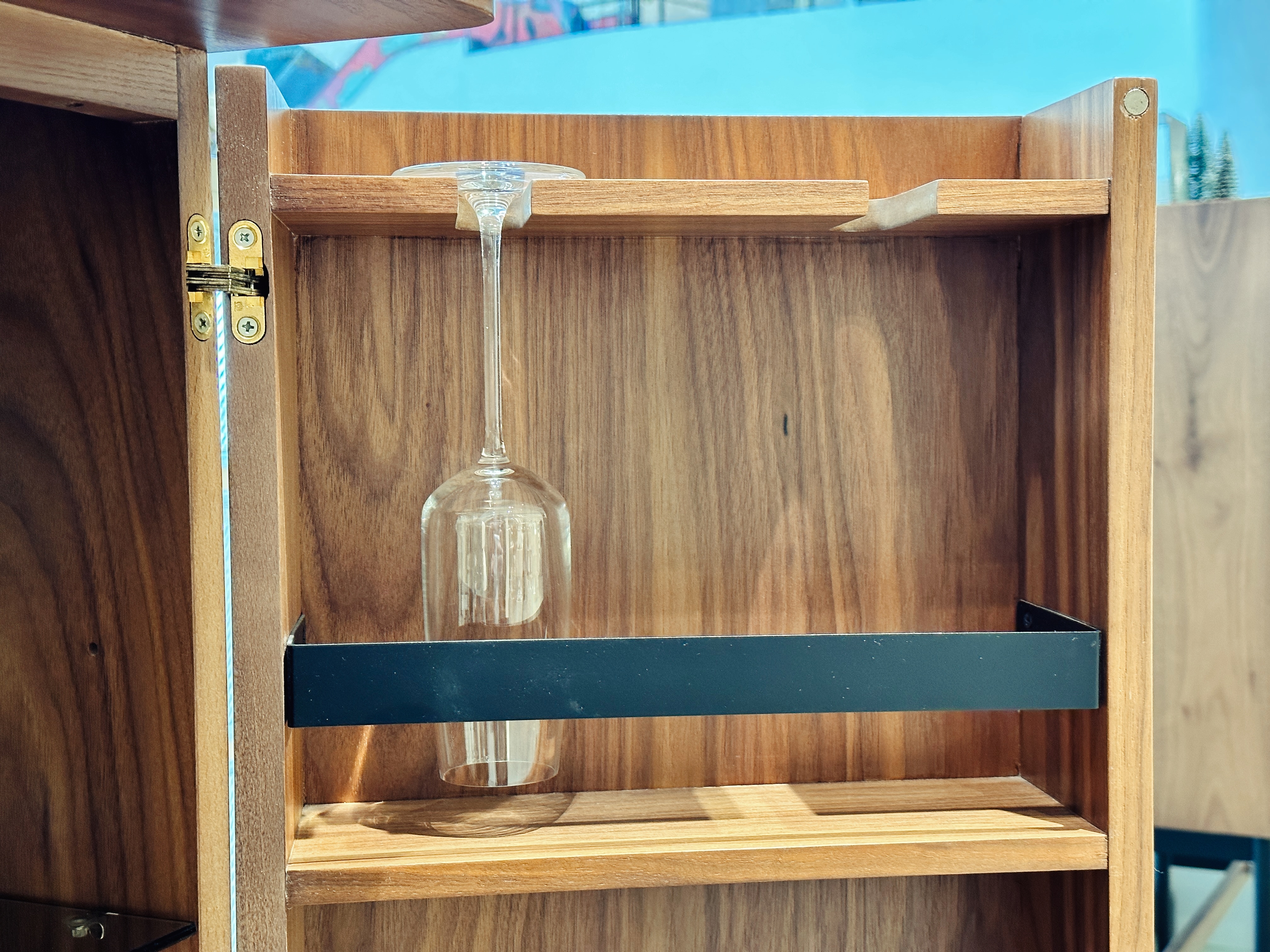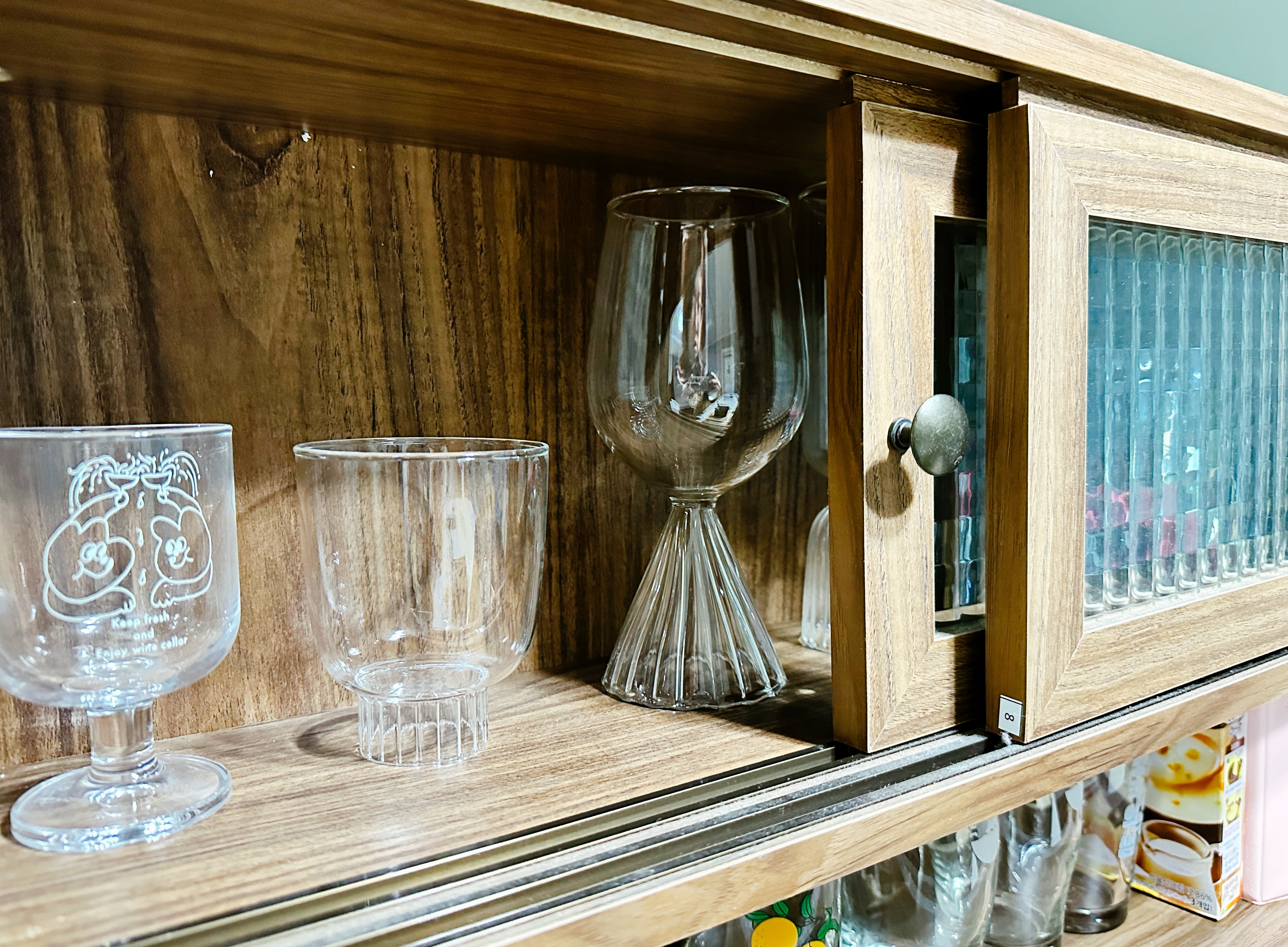 캐비닛 문은 또다른 선반이 되어 아름다운 와인잔을 더욱 돋보이게 진열해주고 안전하게 보관해주는 역할을 합니다. 이처럼 오로지 특정 대상만을 위해 존재하는 무언가를 볼 때 느껴지는 특별함이 있지 말입니다.