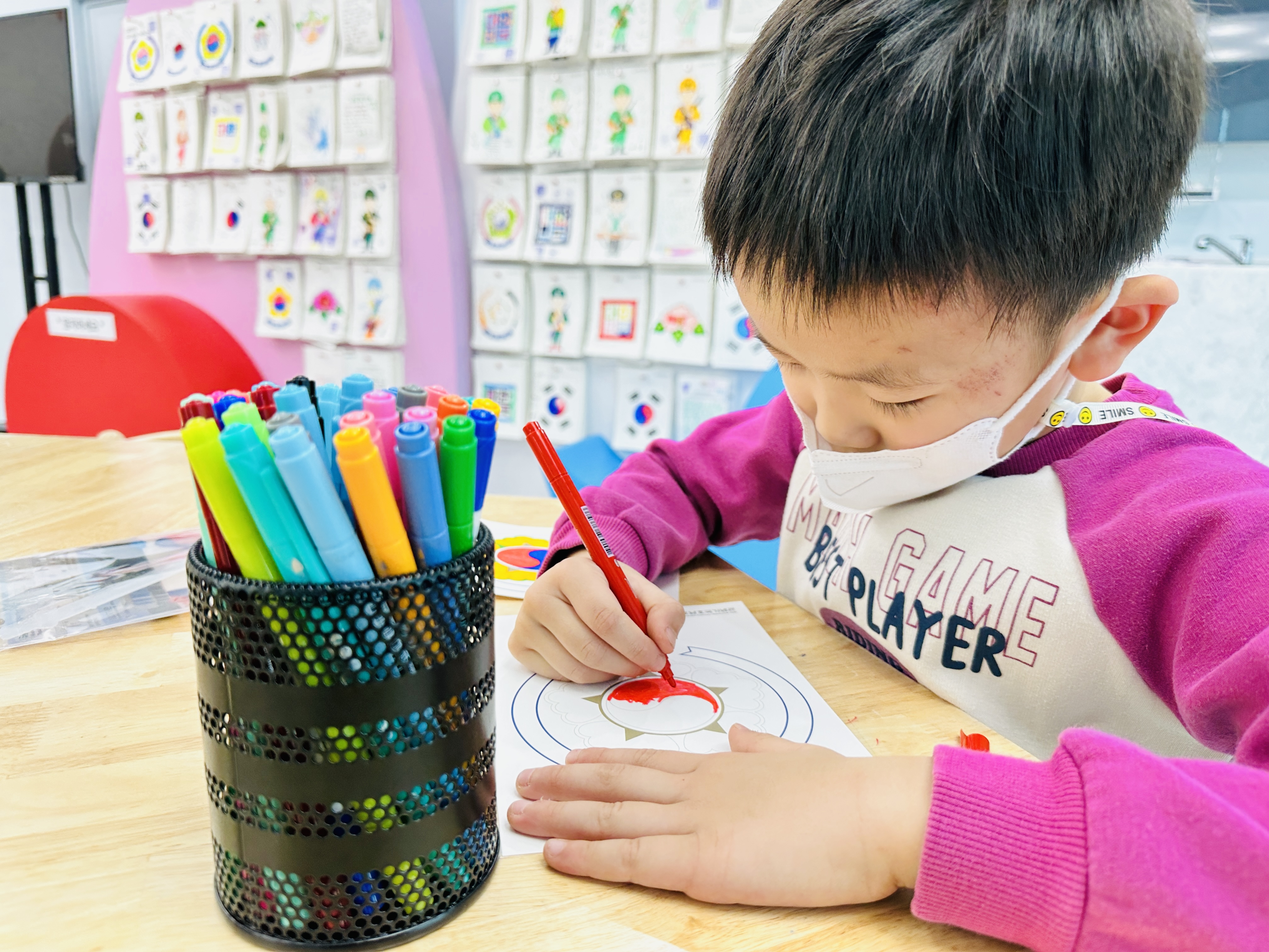 마지막으로 나라사랑 놀이터(VR체험관/북카페 옆)에서 태극기 바람개비를 만들고 그림을 색칠하며 오늘 봤던 내용들을 정리했습니다. 아이들은 체험할꺼리가 있어 좋아했고, 어른들은 휴식 겸 전시 내용을 정리할 수 있어 더 의미있었던 시간! 아이들 표정이 진지하네요.