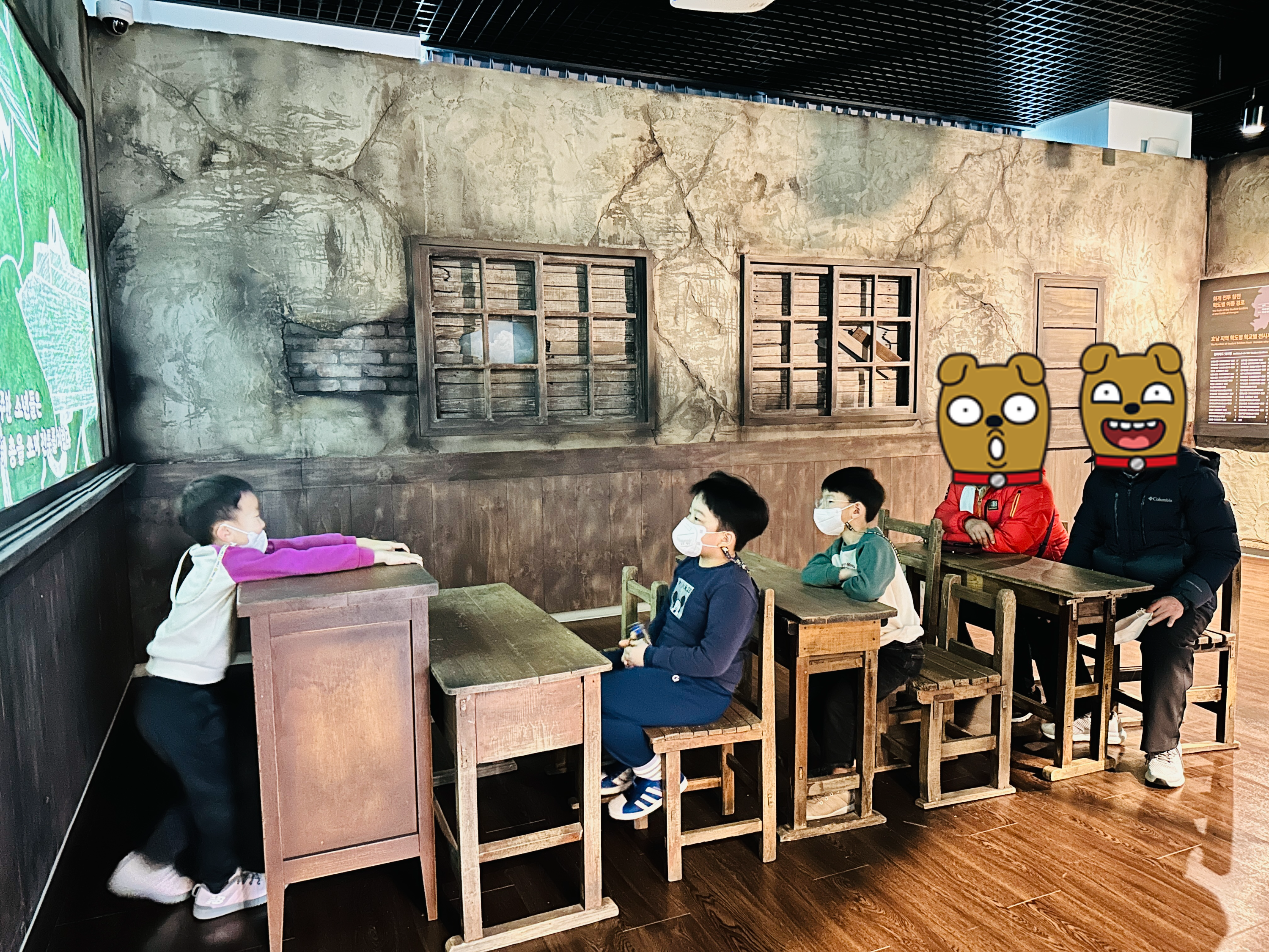 아버지의 참전, 피난, 전사, 68년만의 귀한 스토리를 마치 4D 영화처럼 보여주는 VR체험관은 그야말로 압권이었쥬. 5분 정도의 상대적으로 짧은 영상 + 일반 의자에 앉아 보는 코너와, 좀더 긴 영상 + 움직이는 의자에서 보는 코너까지 종류도 2가지나 되더라고요. 높은 의자에 앉아 발 아래를 보는디 내 몸이 공중에 떠 있는 것 같고... 내용은 살짝 진부해도 이런 기술적 도움이 더해진 결과 더 실감나게 다가오긴 했던 것 같습니다. 7살-10살 되는 아이들은 정말 좋아했고 시부모님은 VR체험 직후 살짝 어지럽다 하셨으나 금방 괜찮아 지셨어요.